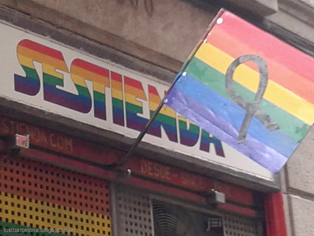 | Mientras tanto los balcones del Madrid mas castizo cambiaba los mantones de Manila de los balcones por banderas del Arco Iris con crespones negros |